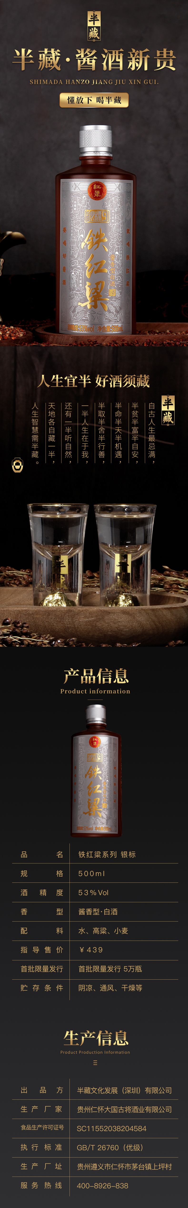 半藏铁红粱银标53度酱香型白酒500ml