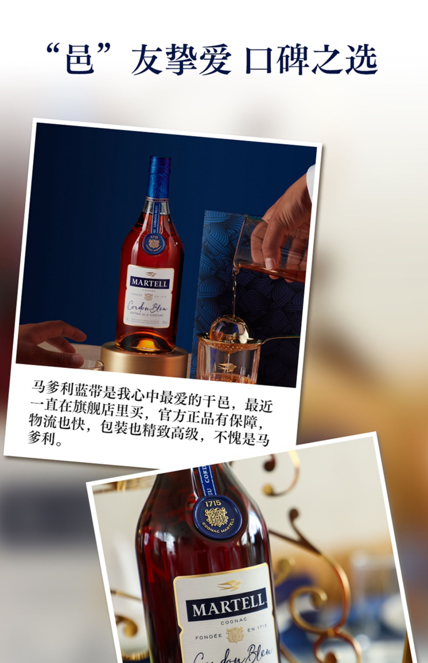 Martell马爹利蓝带白兰地700ml 法国原装进口洋酒