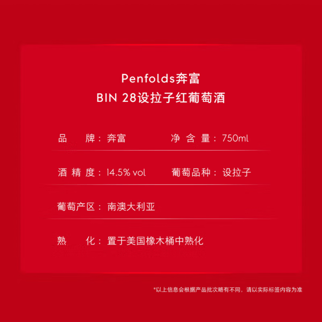 奔富BIN138(行货)干红葡萄酒 750ml